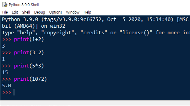 우리가 상식적으로 생각하는 사칙연산과 동일하게 파이썬에서도 동작하는 것을 확인할 수 있습니다.