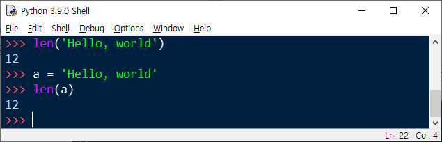 len() 함수의 괄호 안에 길이를 알고 싶은 문자열 변수나 문자열을 입력하면 그 문자열의 길이를 알려줍니다.